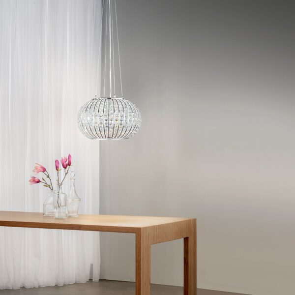 Lampadario Blog Cromo 6Xg9 66X111Cm, realizzato in Metallo E Vetro, con sorgente G9, potenza nanW, flusso luminoso nanlm, temperatura colore nanK.