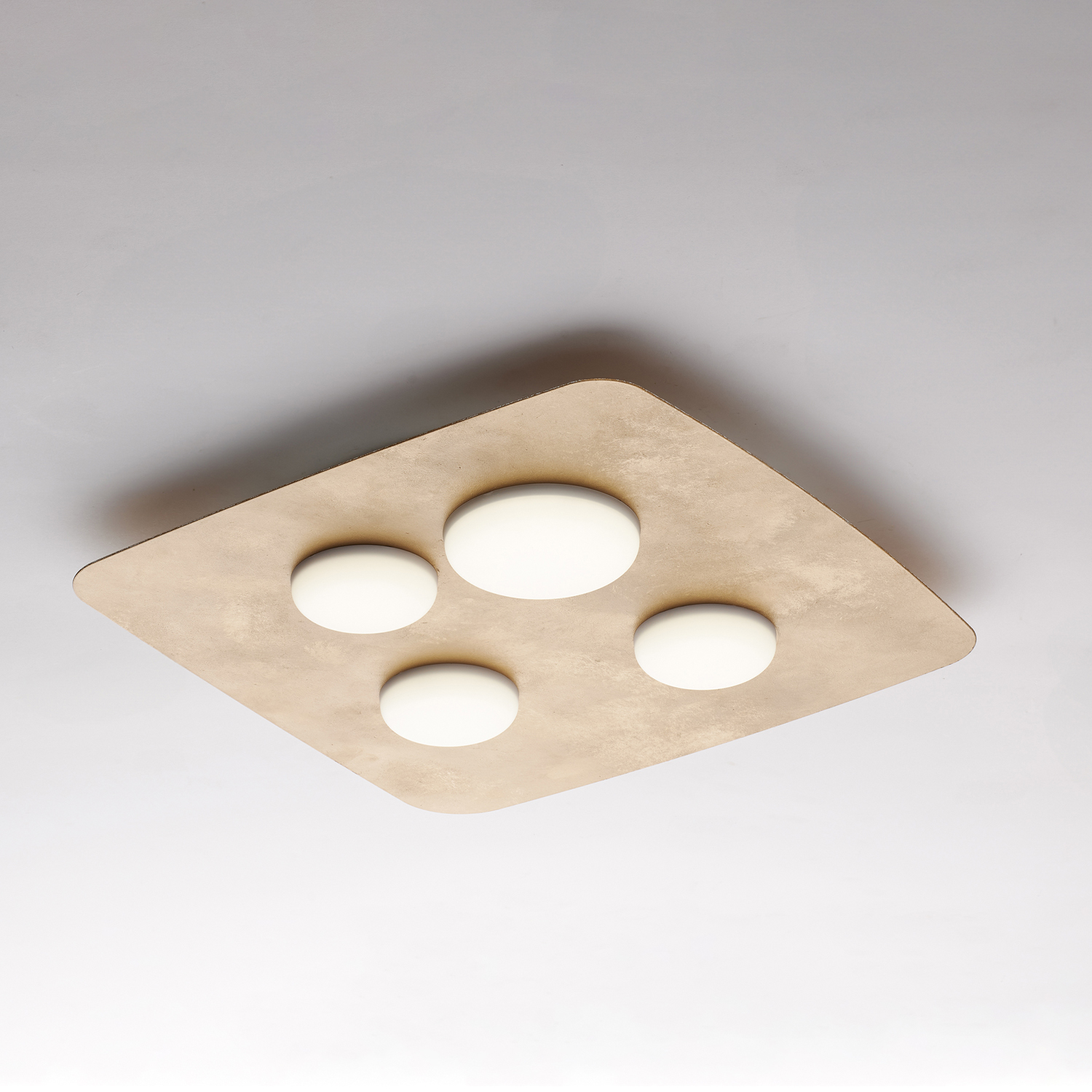 Plafoniera in in metallo laccato bianco con decorazione oro antico e diffusori in silicone a led integrato 4 luci, finitura oro 4 luci serie Megan