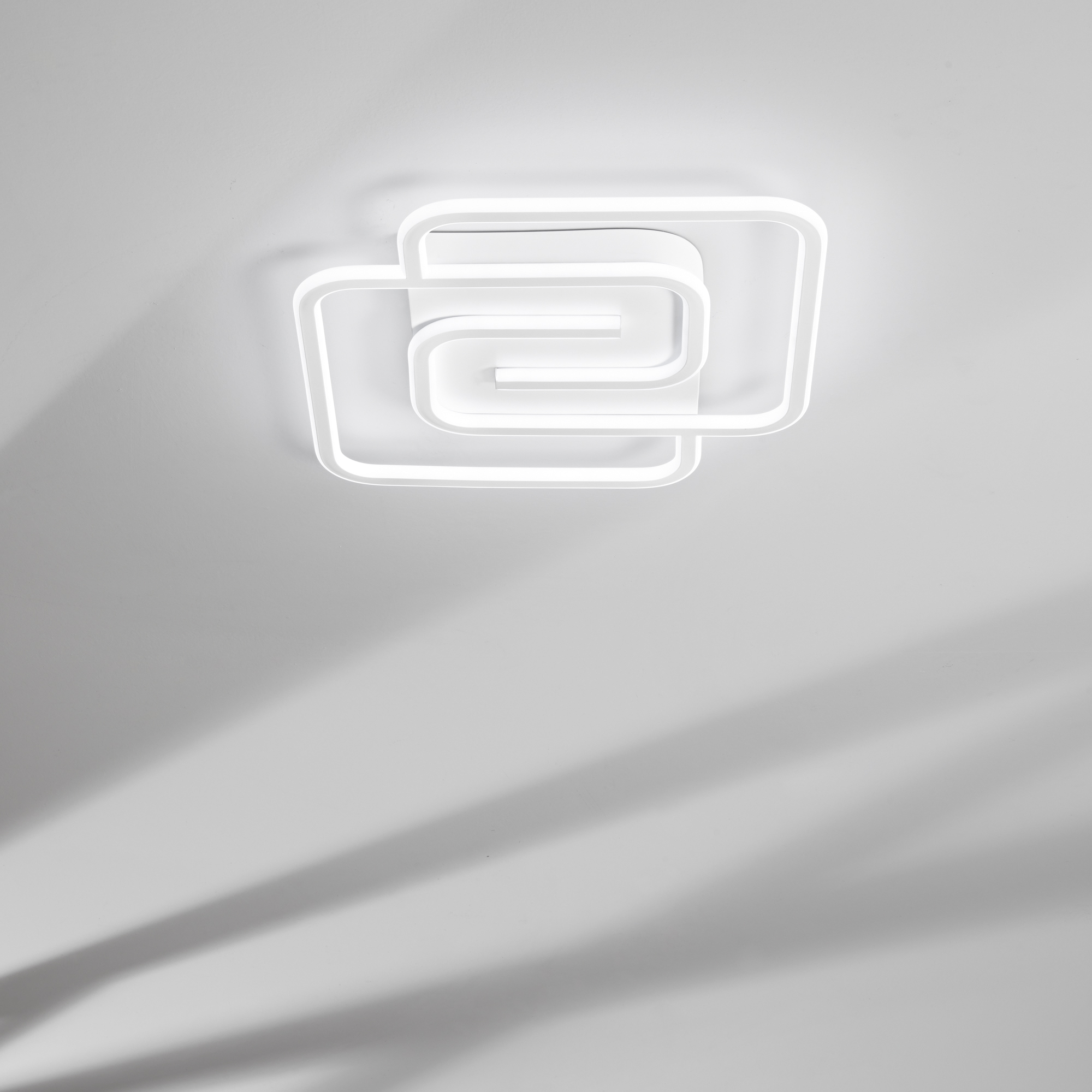 Plafoniera Led Cayman Quadrata Bianca 40W 5440Lm Cct 49X49X6Cm, realizzato in Metallo E Diffusore In Silicone, con sorgente LED, potenza 40W, flusso luminoso 5900lm, temperatura colore 3000-4000 6500K.