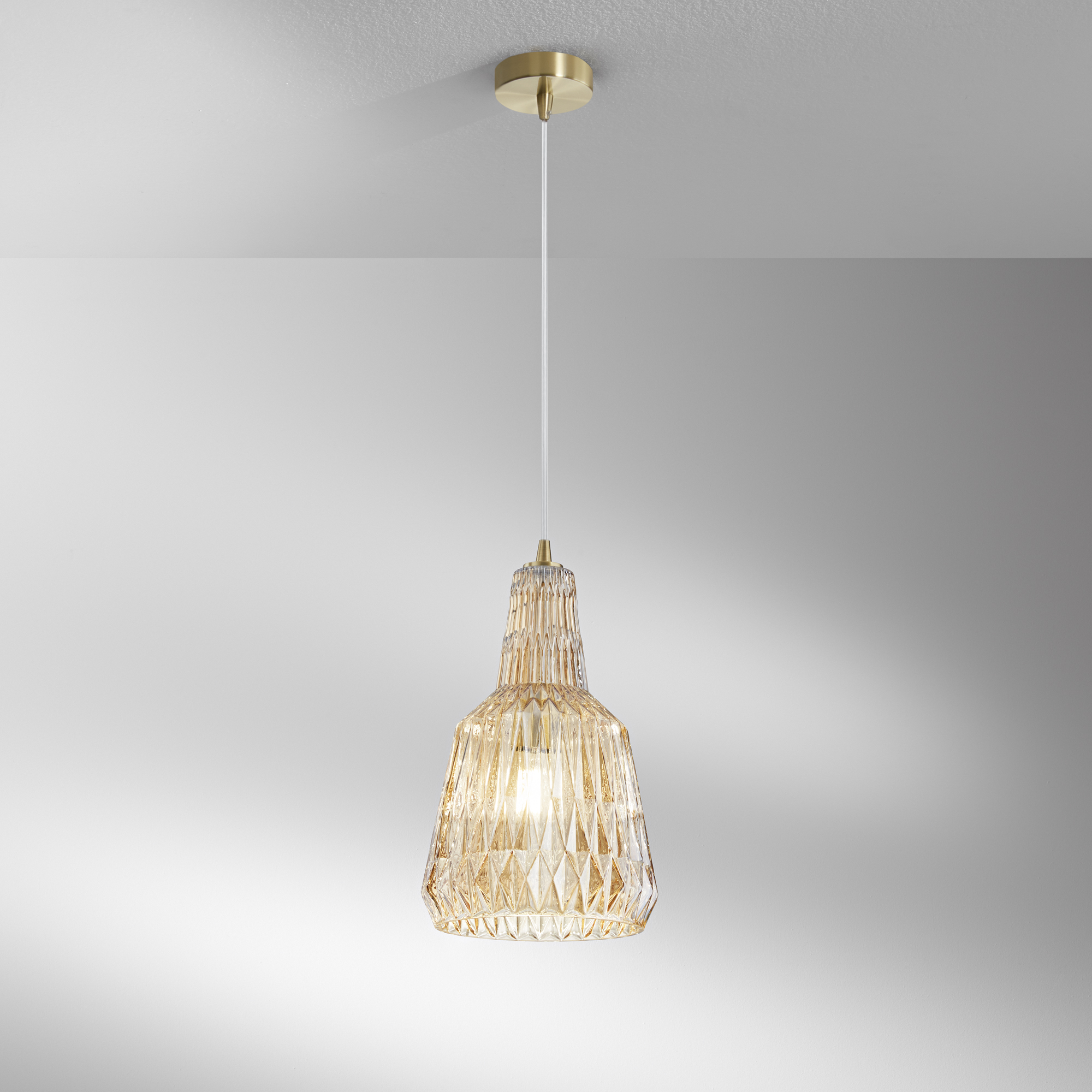Sospensione Galway Ambra 1Xe27 23X150Cm, realizzato in Vetro, con sorgente E27, potenza nanW, flusso luminoso nanlm, temperatura colore nanK.